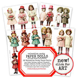 There are 3 different Vintage Valentine Post Cards, 3 hearts for stamping words, and 1 sweet Valentine Girl with a basket and kitty cat.  What will you make?  Click HERE for Here Comes Valentine's Day.  Click HERE for more than 1000 beautiful Collage Sheets. Click HERE for Brand New Rubber Stamps.