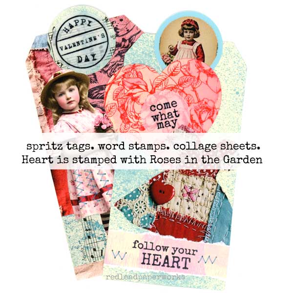 The rubber stamps are Red Lead exclusive designs that are made in the USA of premium quality cling mount red rubber. Each stamp is trimmed to size and on a storage card.