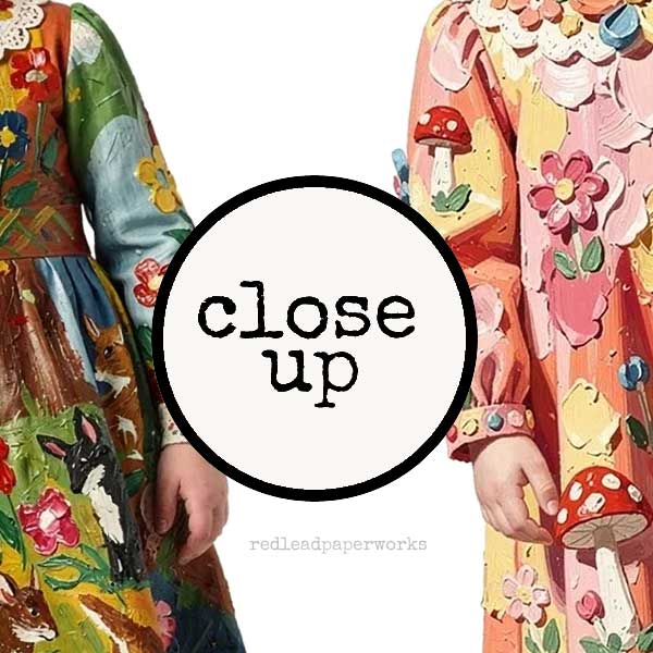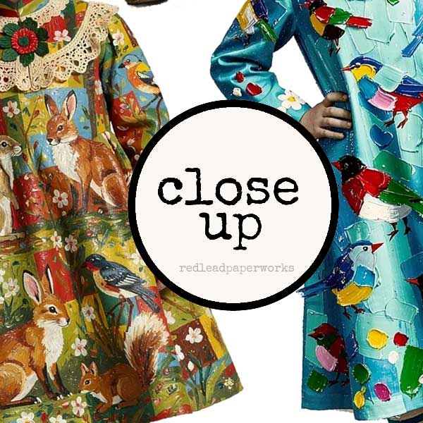 The Art Girls Love to Paint Collage Sheet Collection has 4 Paper Doll Collage Sheets. Whimsical 82, 83, 84, & 85. The size of the Paper Dolls are about 2" x 4". The Art Girls are wearing dresses they painted with whimsical flowers, birds, mushrooms, and woodland animals. Make all things Artful with the Art Girls Love to Paint Paper Dolls