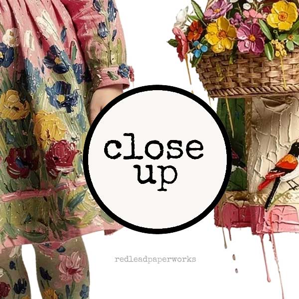 Red Lead Collage Sheets are original designs that are professionally laser printed in the USA on 8-1/2" x 11" archival quality paper. Our collage sheets will not run or smear when you use any medium of your choice for gluing or sealing. Red Lead Collage Sheets are sent to you carefully wrapped between 2 pieces of sturdy chipboard and protected with a clear sleeve to arrive to you in perfect condition.