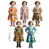 The Whimsical 83 Art Girls Paper Dolls Collage Sheet has 5 adorable Art Girls that Love to Paint wearing painted dresses with flowers, birds, and small mushrooms. They are also wearing painted stockings and shoes. What will you paint today? The size of the Art Girls Paper Dolls is about 2-1/2' x 4-1/4".