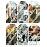 There art 6 Vintage Paris Artist Trading Cards and 5 Mini Artist Trading Cards on the Paris 11 Collage Sheet. The size of the Artist Trading cards are 2-1/2" x 3-1/2", the minis are about 2" x 2-1/2". The artist trading cards may be a little smudged and worn around the corners, they are from original Paris Postcards that we scanned in exactly as we found them - perfectly imperfect.ClickHEREfor Paris Rubber Stamps, Collage Sheets and Art Kits.