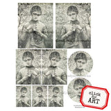 Ancestors 51 Collage Sheet. 12 vintage photos of cute kids.  The largest photo is about 4" x 5" and the smallest photo is about 1" x 1". Red Lead collage sheets are printed in the USA on 8-1/2" x 11" archival quality paper.